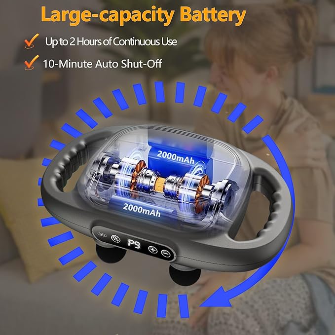 ✅ Overview ✔ Professional-grade massage heads (package) – Equipped with six rotating nodes to target deeper muscle layers, providing efficient relief from soreness. ✔ Smart AI chip (box text) – Ensures intelligent operation with consistent massage pressure and speed for safe and effective use. ✔ LCD screen with gear control (box) – User-friendly interface allows you to customize intensity settings easily during use. ✔ Ultra-quiet design (box) – Operates with minimal noise, ideal for relaxing environments. ✔ Versatile use (side panel) – Suitable for massaging thighs, calves, soles, and waist while lying down.